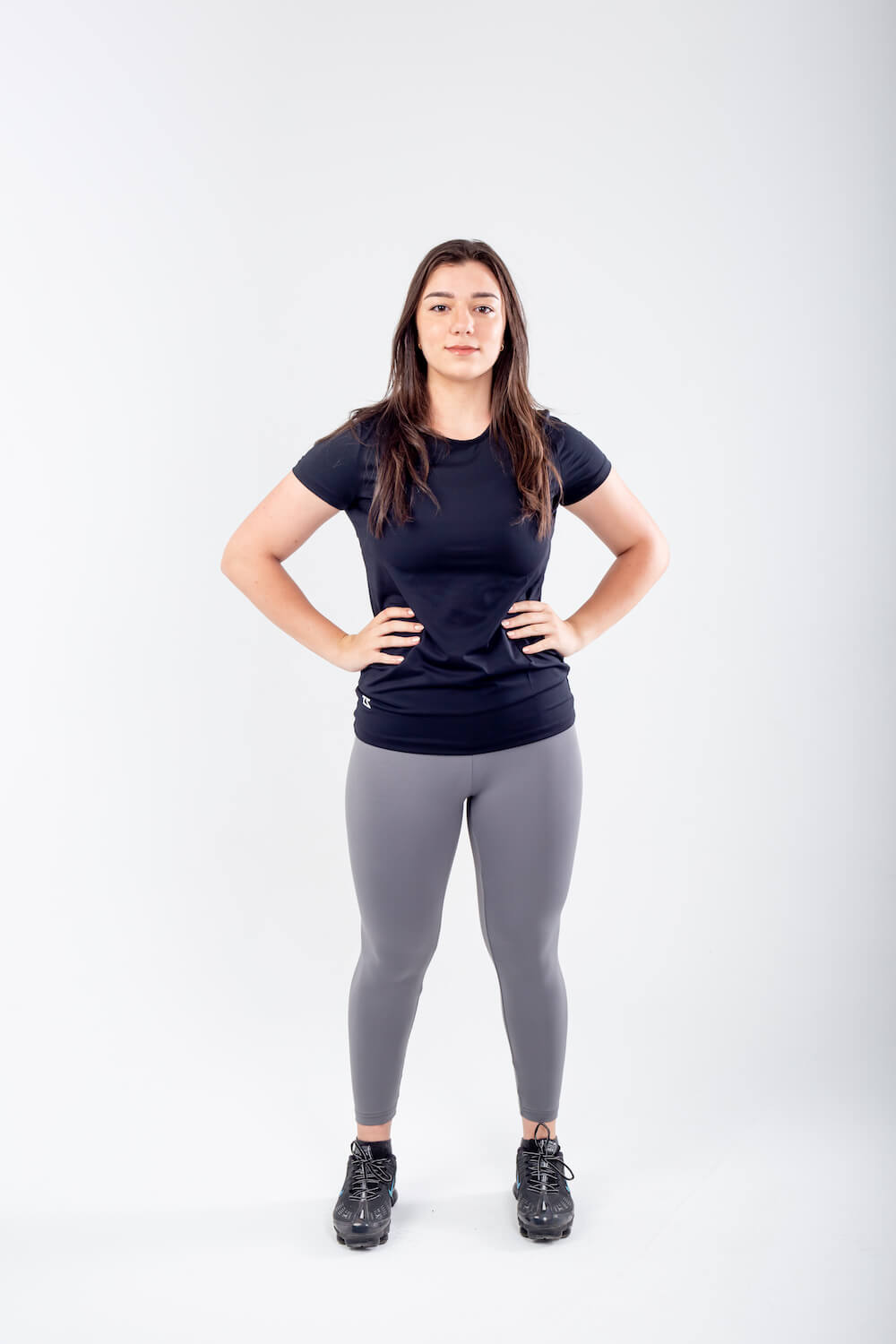Basic Black T-Shirt, الافضل لاداء افضل. يتميز بهيكل داعم ونسيج يحسن الشكل وقياس أنيق ، توب التمرين الذي يحتاج إلى خزانة ملابسك. مع مجموعة متنوعة من الألوان للاختيار من بينها ، قم بتنسيق هذا التيشيرت الأسود الأساسي بسهولة مع أي بنطلونات ضيق من IZZY.